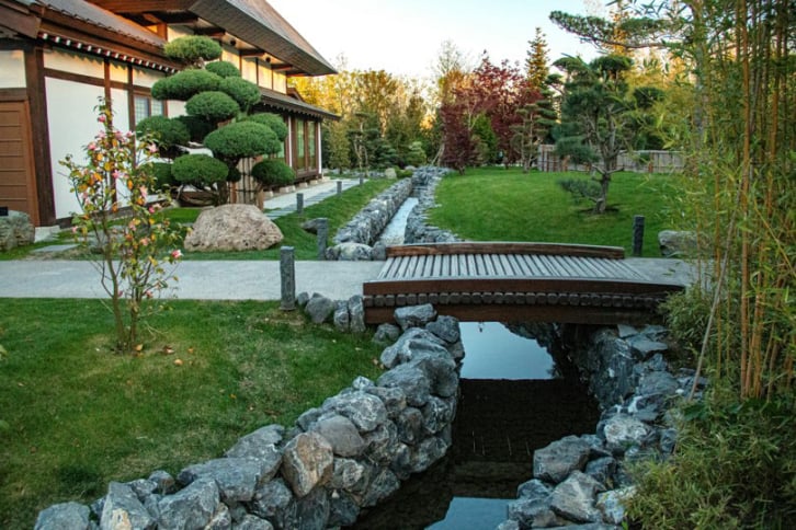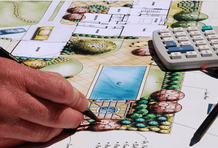 ซึ่งอาจรวมถึงการจัดวางต้นไม้ ทางเดิน ลาน พื้นที่พักผ่อน น้ำพุ ระบบระบายน้ำ และองค์ประกอบตกแต่งต่าง ๆ เพื่อให้เกิดสมดุลระหว่างธรรมชาติและการใช้ชีวิตของมนุษย์